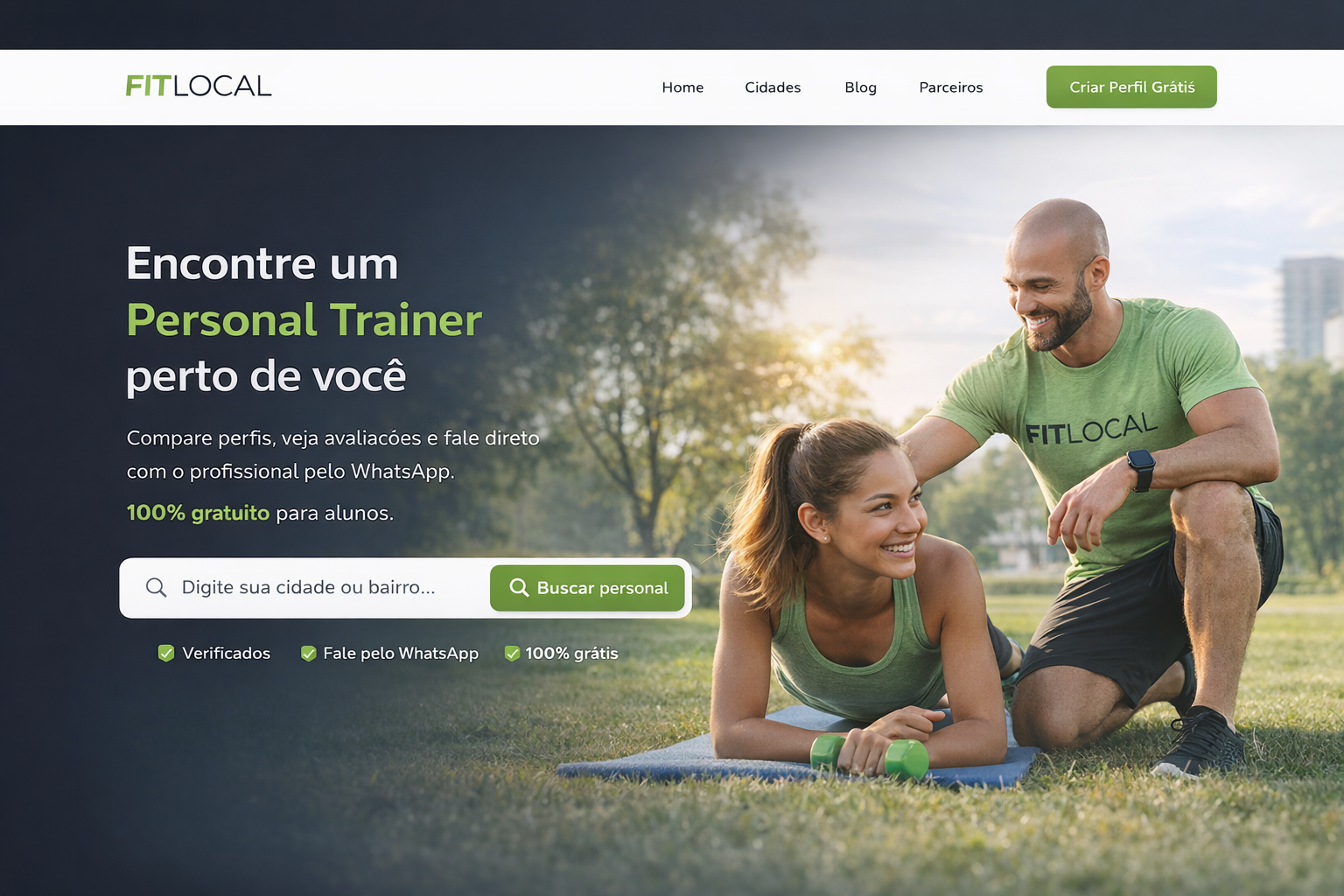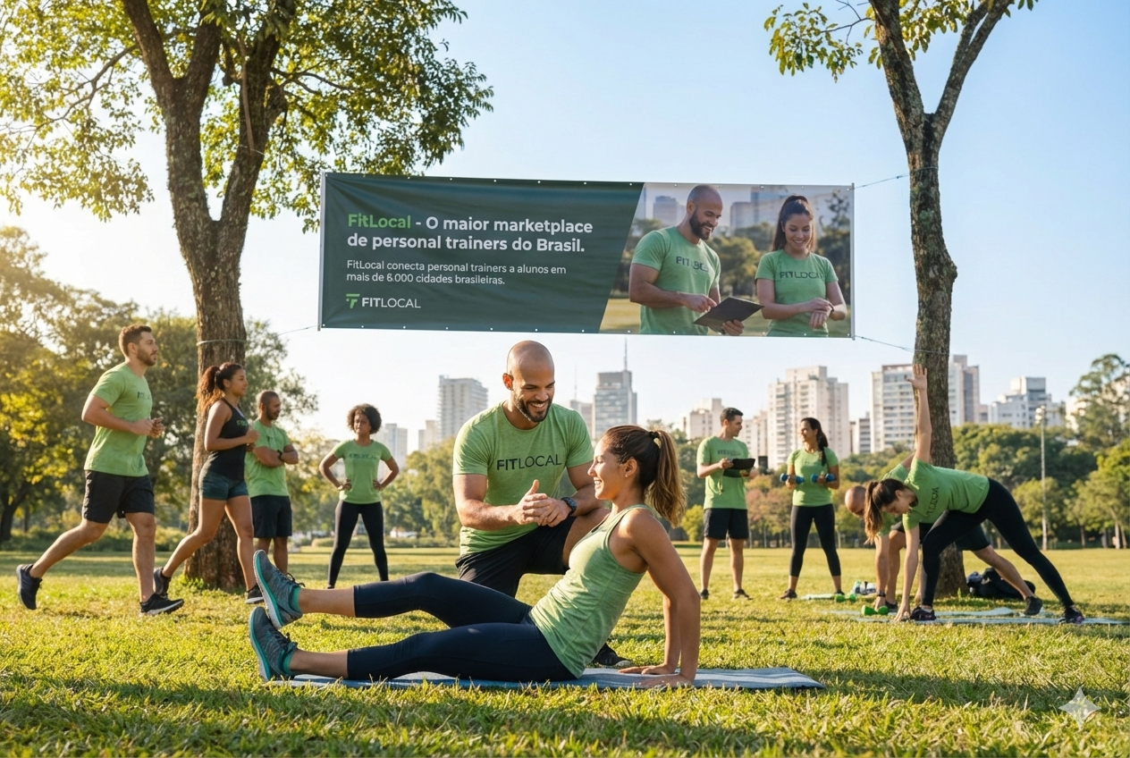 A FitLocal utiliza a lógica do fitness local, conectando alunos a personal trainers da mesma região, reduzindo barreiras de deslocamento e aumentando aderência à prática.